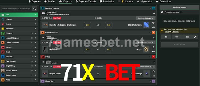 O 71X Bet oferece uma grande seleção de opções de apostas em e-sports com probabilidades competitivas